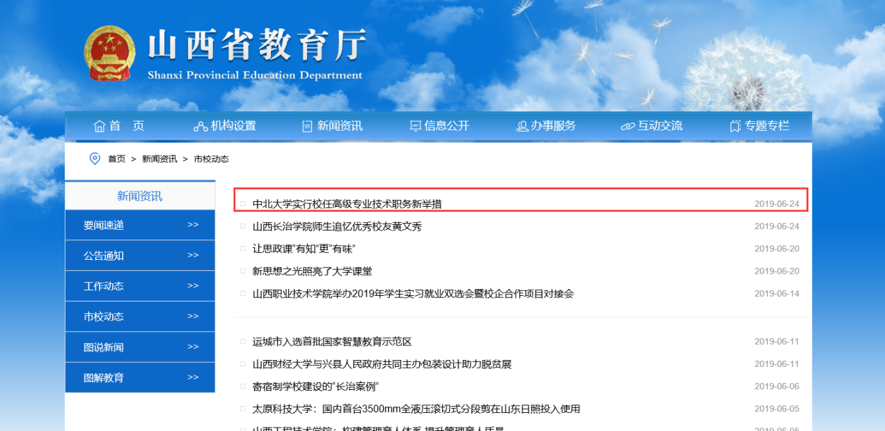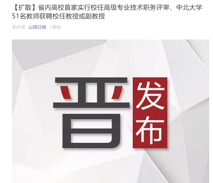 千秋基业,人才为本。目前是改革开放再出发的关键时期,山西比任何时候都更渴望人才。我校于2019年首次启动的教师校任高级专业技术职务评审工作开辟了我省校任教授评审先河,相继引发省级主流媒体热烈关注,继6月11日山西日报进行突出报道后,6月24日省教育厅网站的“市校动态”栏目头条也进行了报道。这标志着我校在选人、用人、留人领域走在了全省前列。